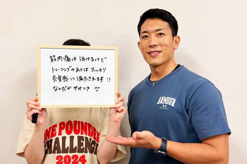 「The筋トレ」のようなゴリゴリのマシンをほとんど使用せず、ご自身の身体の感覚を大切にした内容ですので、身体の変化とともに動けるようになるのを実感いただいています。